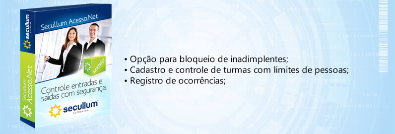• Configurações de avisos sobre vencimentos de mensalidades nos equipamentos de acesso;